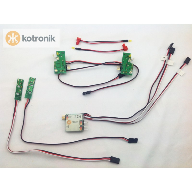 You use a normal extension servo cable to connect each module to the main board. The Kotronik system is a multplexed control system same as actual reals cars.
