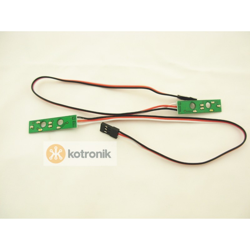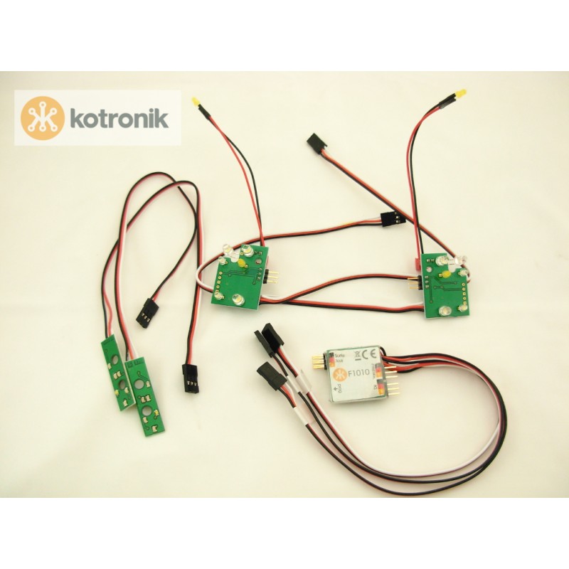 You use a normal extension servo cable to connect each module to the main board. The Kotronik system is a multplexed control system same as actual reals cars.